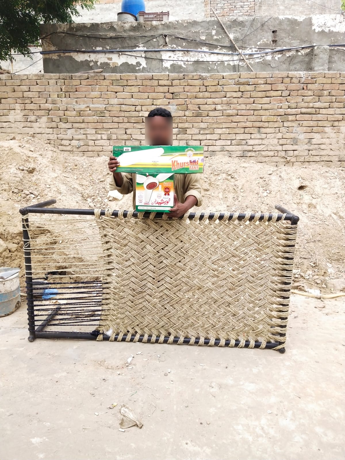 We helped this needy person with a ceiling fan and a bed (Chaar pai). He was very poor and he had recently experienced heavy rain and flood situation which affected his home.